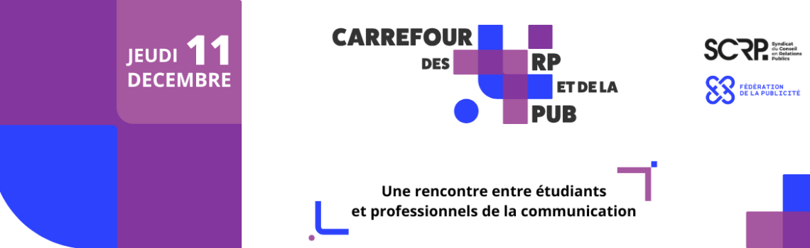 Chaque année, le SCRP organise une rencontre à destination de tous les étudiants intéressés à rejoindre les métiers de l’influence et de la réputation. Pour sa 19ᵉ édition, le Carrefour des RP franchit une nouvelle étape en s’unissant à la Fédération de la Publicité pour créer le tout premier Carrefour des RP & de la Pub.